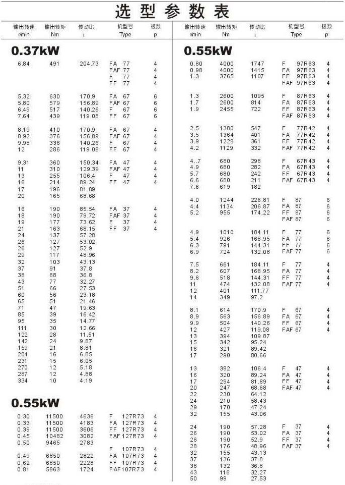 選型參數表0.37kW(續),0.55kW