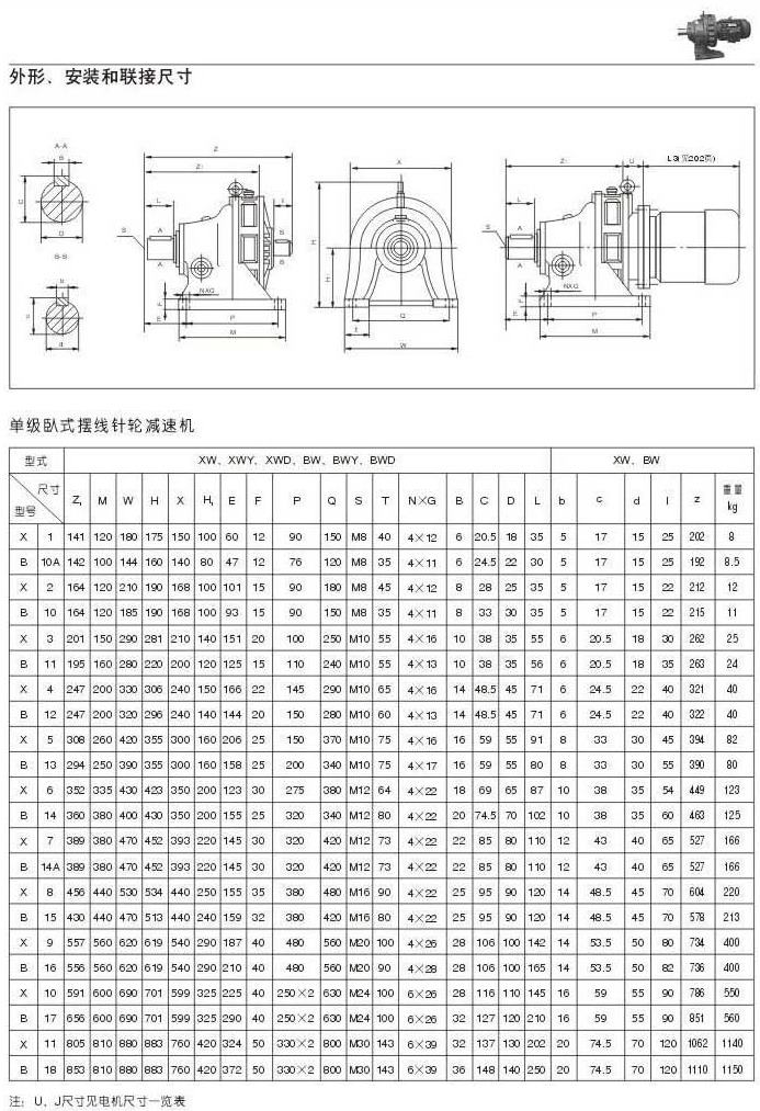X . B擺線針輪減速機外型圖,安裝和聯結尺寸X . B擺線單級臥式針輪減速機外型圖,安裝和聯結尺寸 27