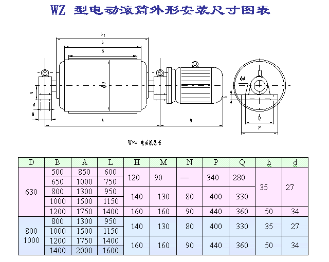 WZ外裝式擺線電動滾筒系列參數表: